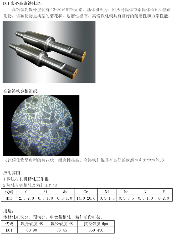HCI离心高铬铁轧辊